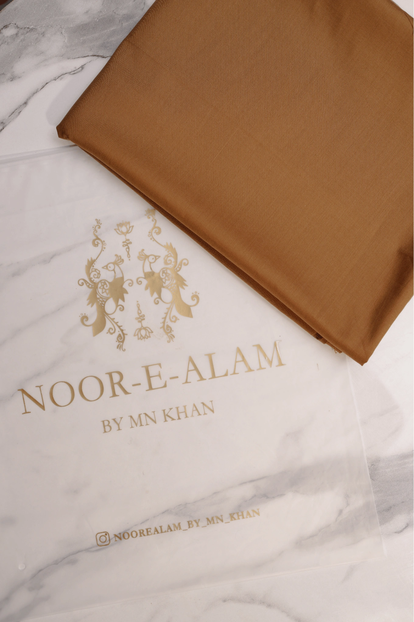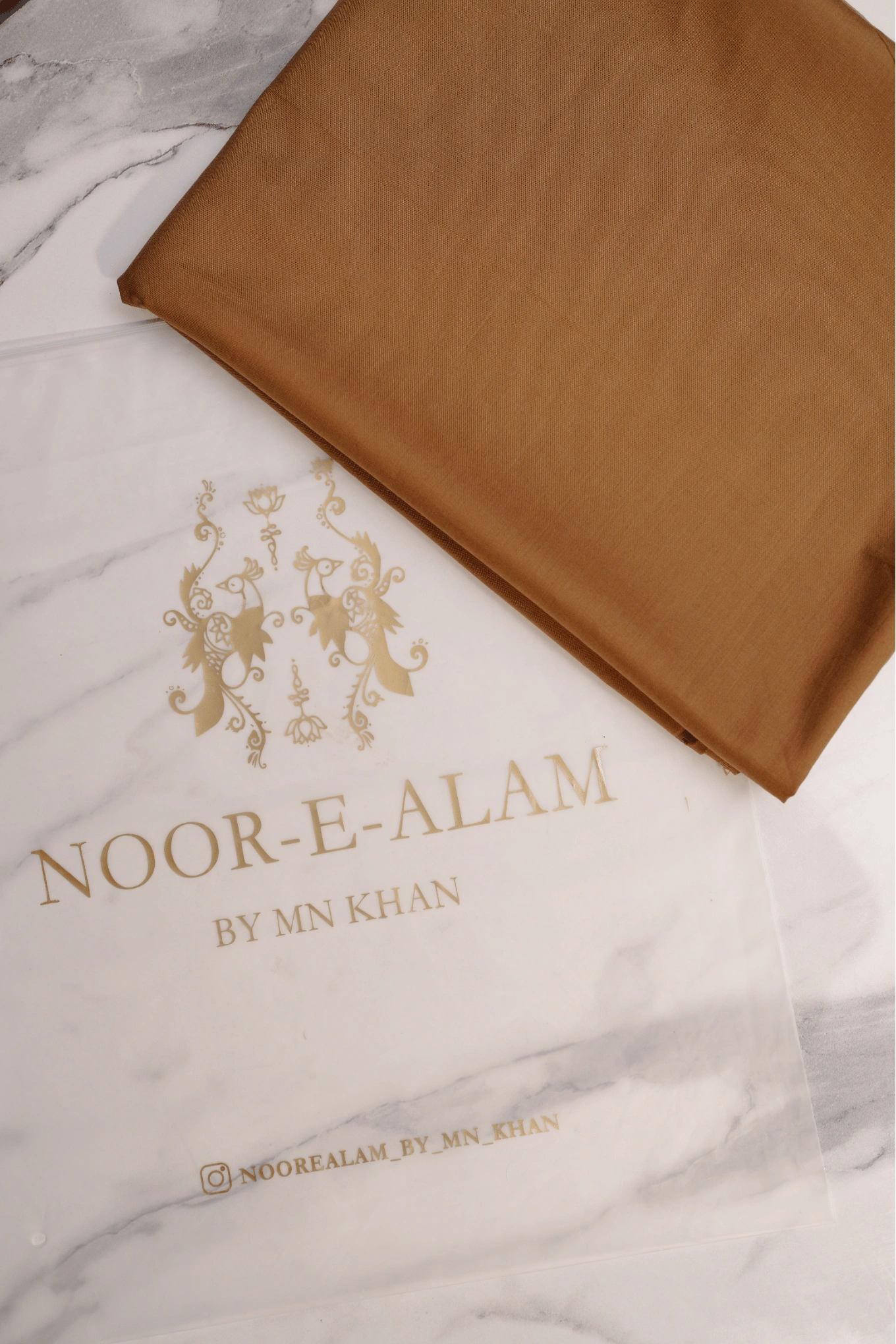 A blended fabric unstitched kameez shalwar in golden brown. 4.5 meters. Suitable for all seasons. Stitch it to your preferred fit and style.