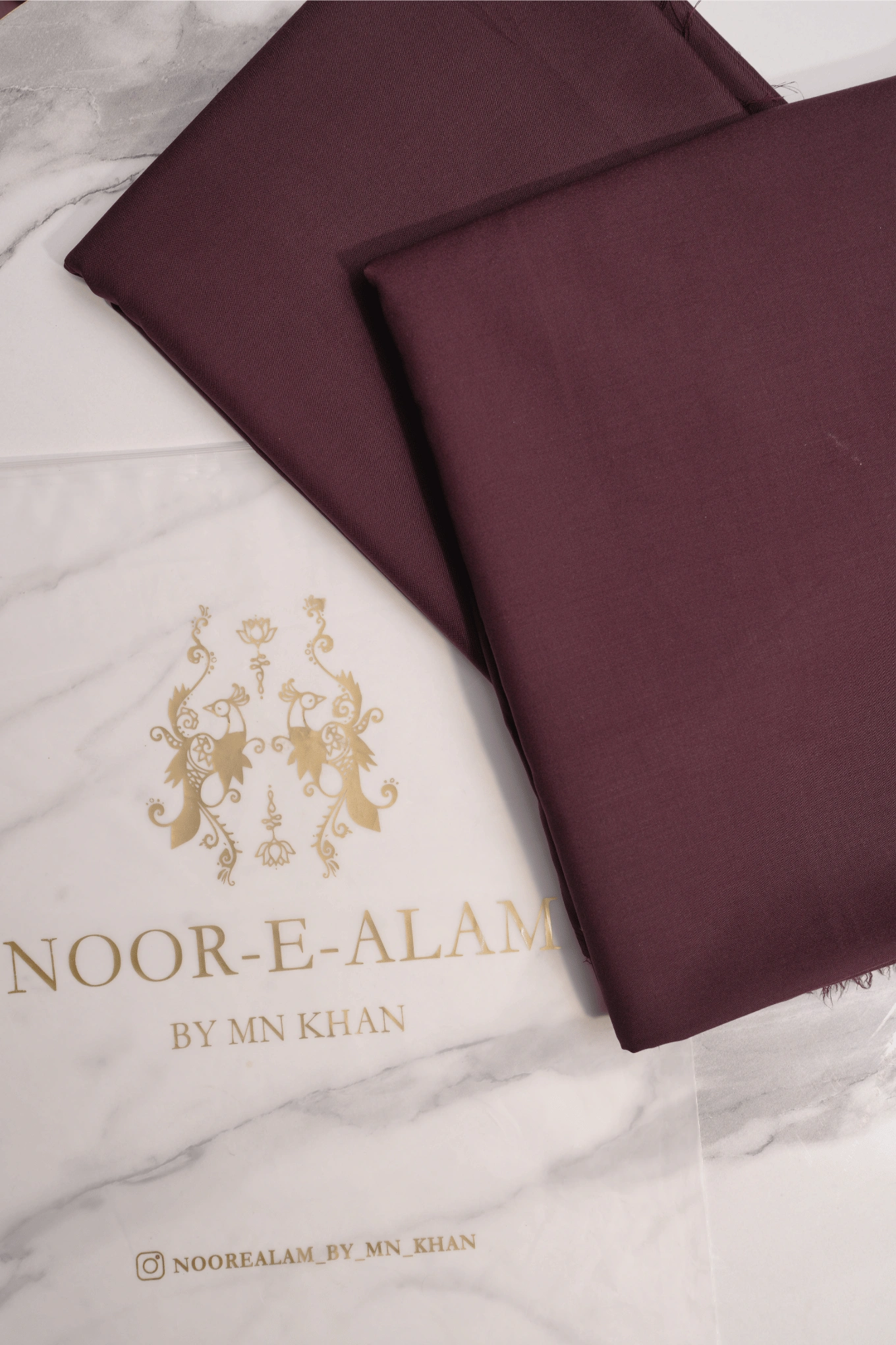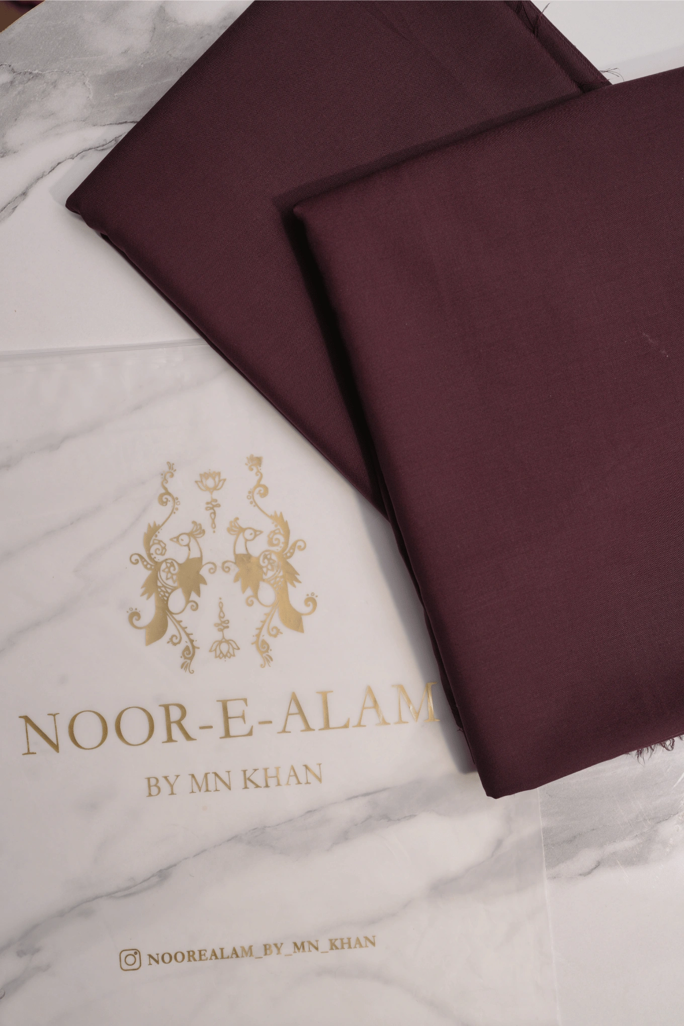 A blended fabric unstitched kameez shalwar in mehroon. 4.5 meters. Suitable for all seasons. Stitch it to your preferred fit and style.